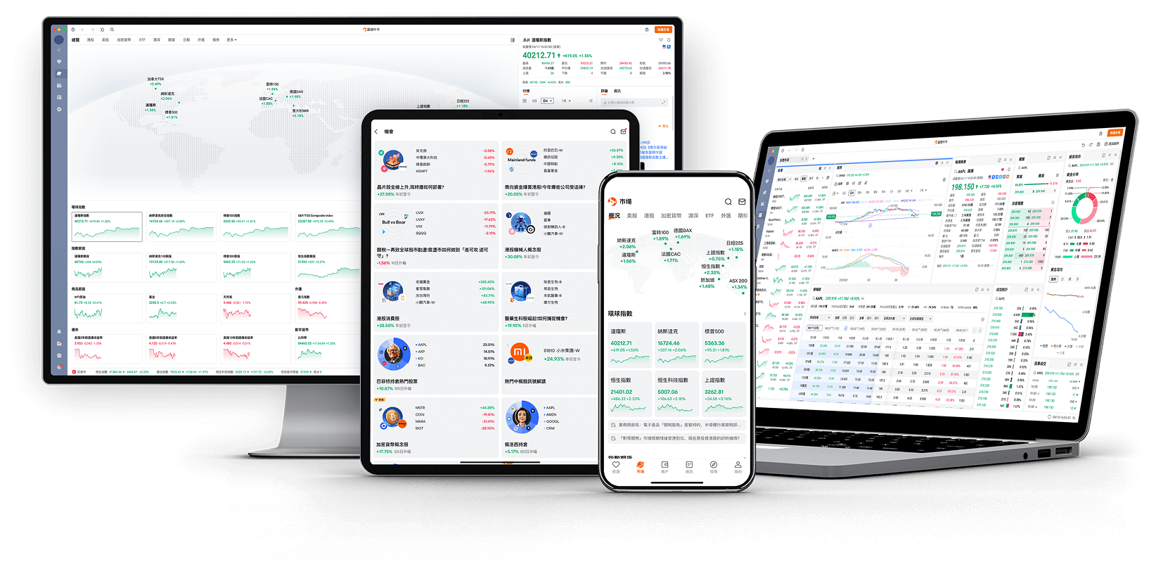 依托全方位自主研發的交易系統,支援全球多市場交易品類,實現港股0.0037秒極速下單、美股24小時不間斷交易,提供多種組合期權策略、港美股打新、低門檻融資融券等創新交易能力。